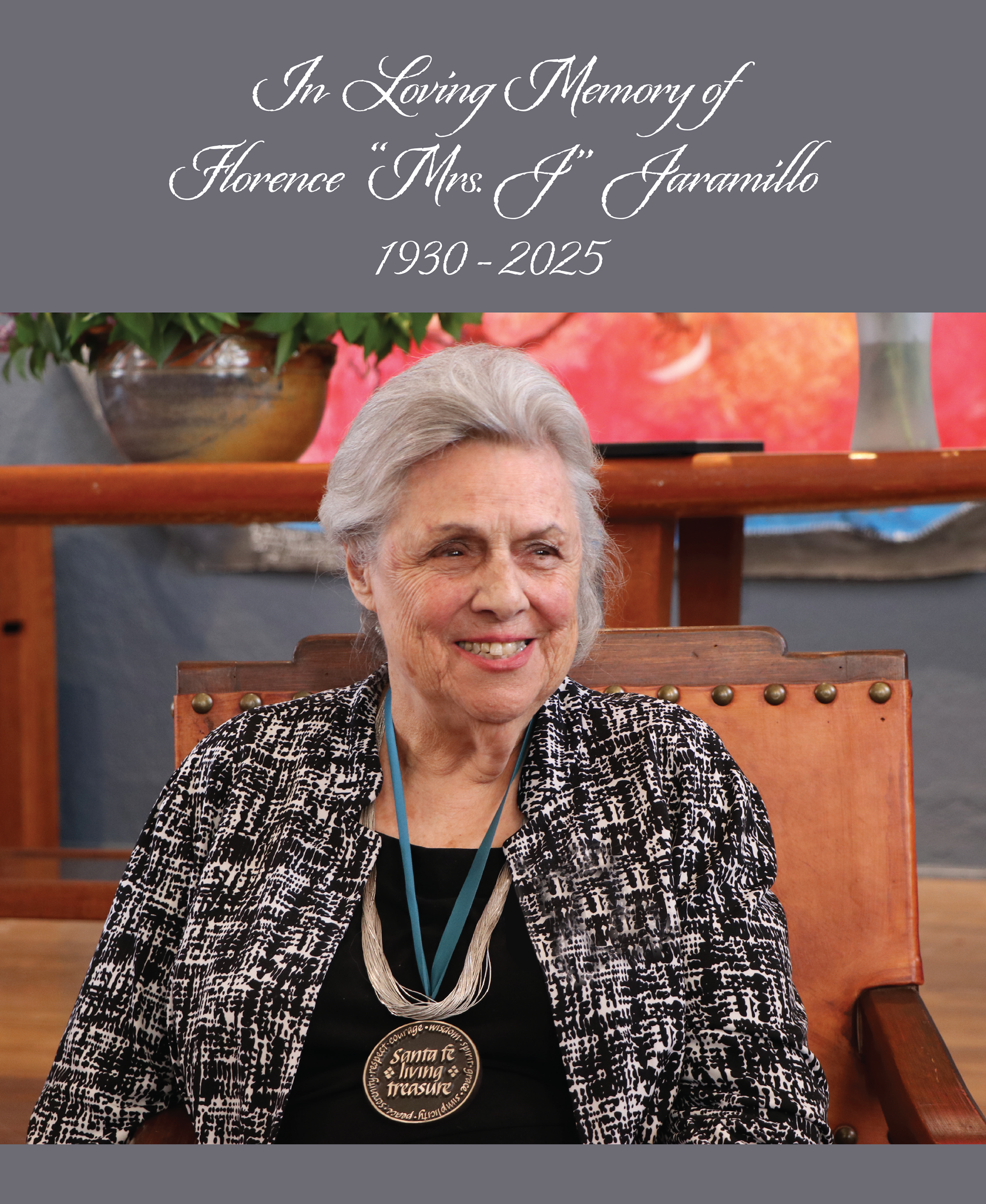 "Mrs. J" as she is known to her customers, friends, family and staff is called a Culinary Treasure by the State of New Mexico. Born Florence Poulin in Hartford CN, she made her way to New Mexico when she married Chimayó native Arturo Jaramillo. Together in 1965 they began Rancho de Chimayó in the restored ancestral family home using recipes perfected over generations. Mrs. J became legendary for her original gastronomic creations, warm hospitality, and integral role in bringing New Mexican Cuisine into the international spotlight. She was New Mexico Restaurateur of the Year in 1987, served on the New Mexico and National Restaurant Associations boards and won the top honor from the National Restaurant Association - The Lifetime Achievement Award. Mrs. J also holds the rank of Honorary Colonel in the U.S. Air Force.